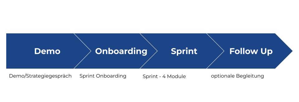 Durch das Sprint Programm führen 2 Senior Consultants. Nach dem Strategiegespräch und einem Onboarding werden 4 Remote Workshops durchgeführt.